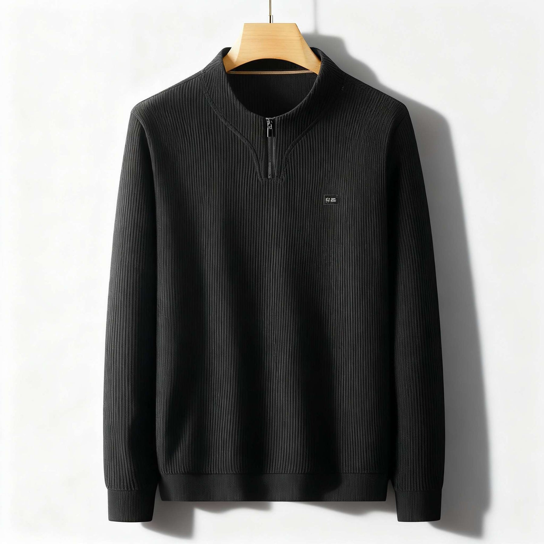 This Frederick Lawrence Classic Sweater is crafted from a premium blend of soft, comfortable materials. A slight stretch and ribbed texture give the piece a classic look and a comfortable fit. Finished with a gentle zip-up collar for everyday wear.