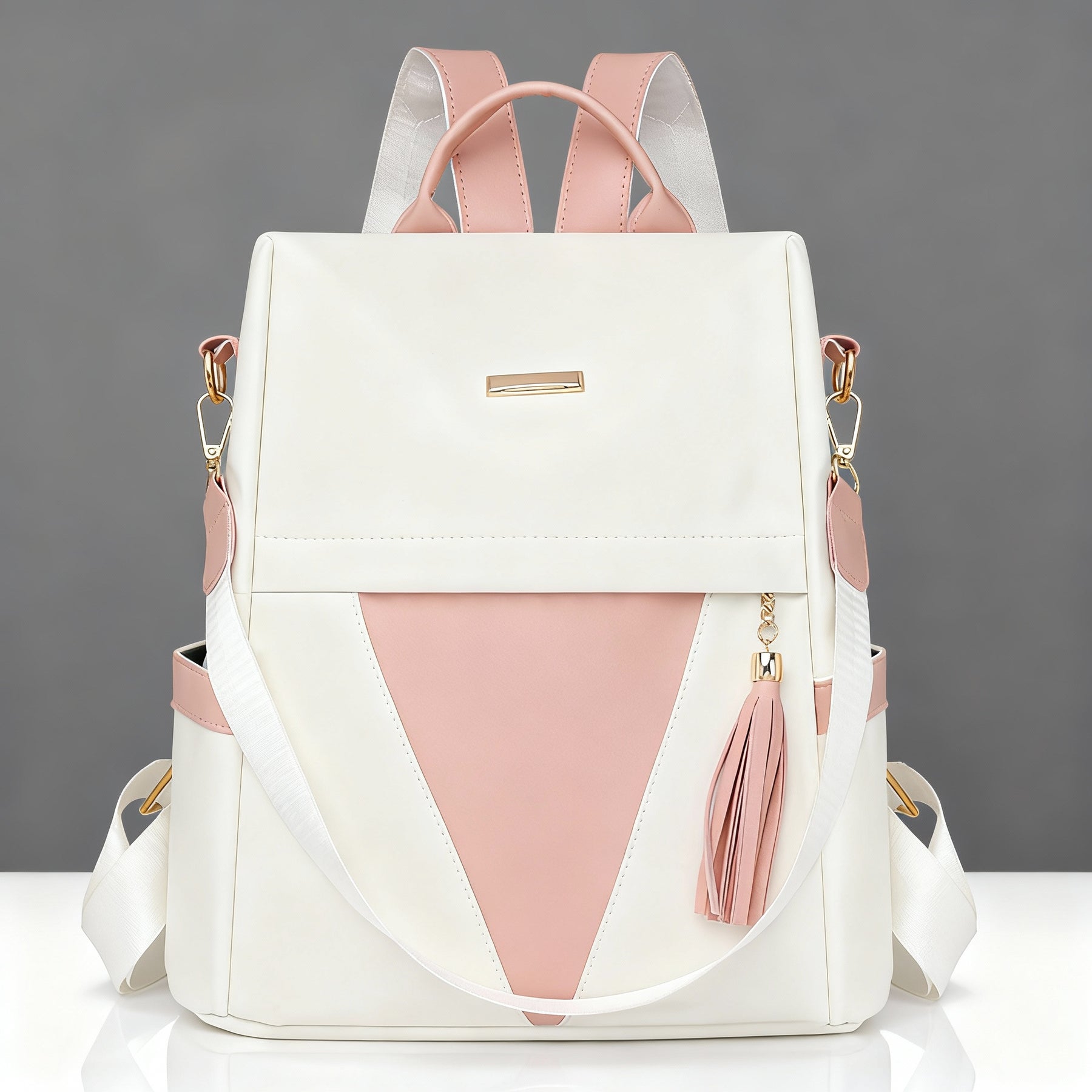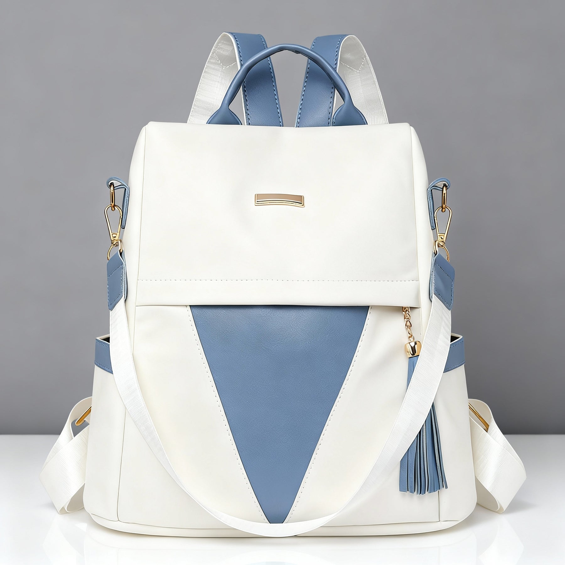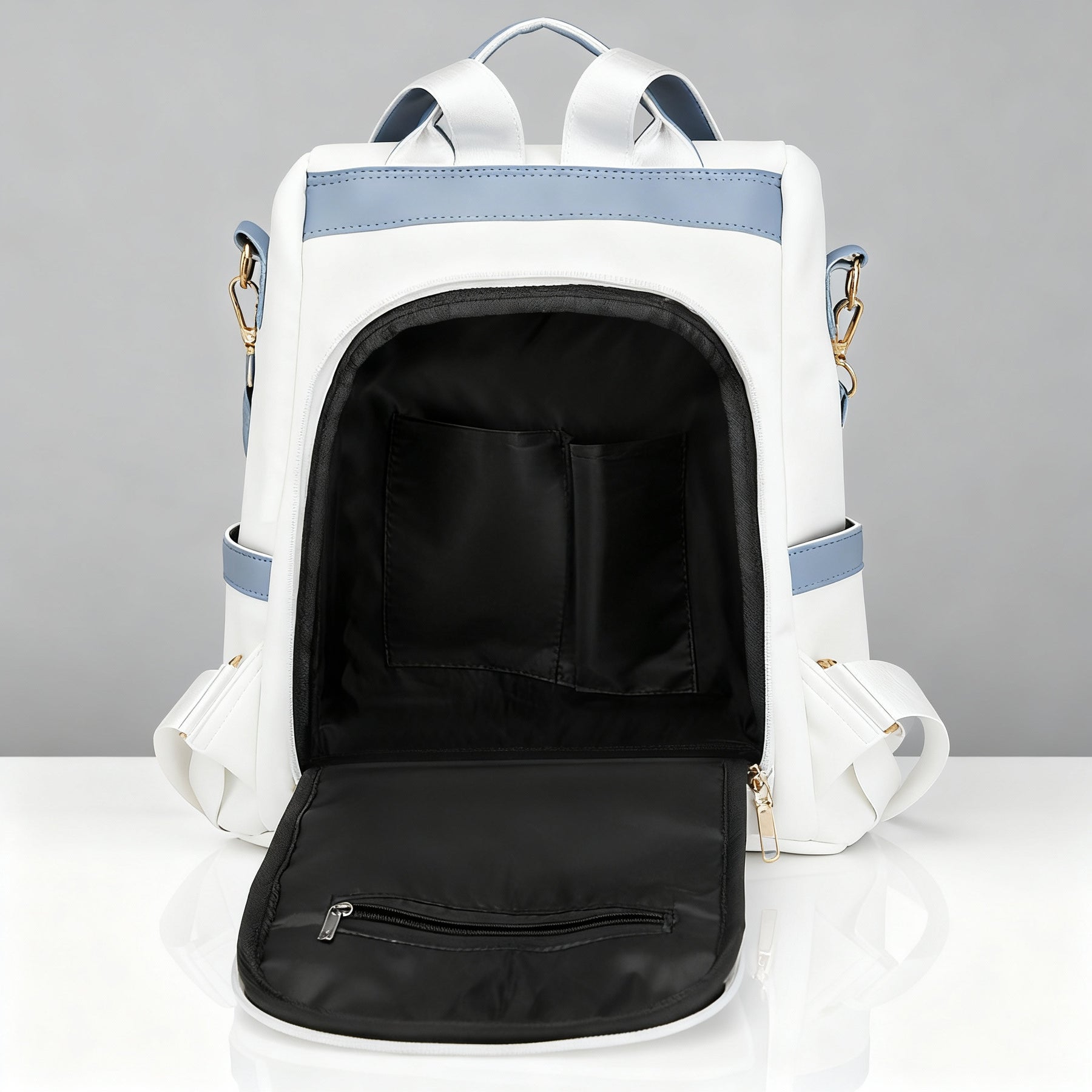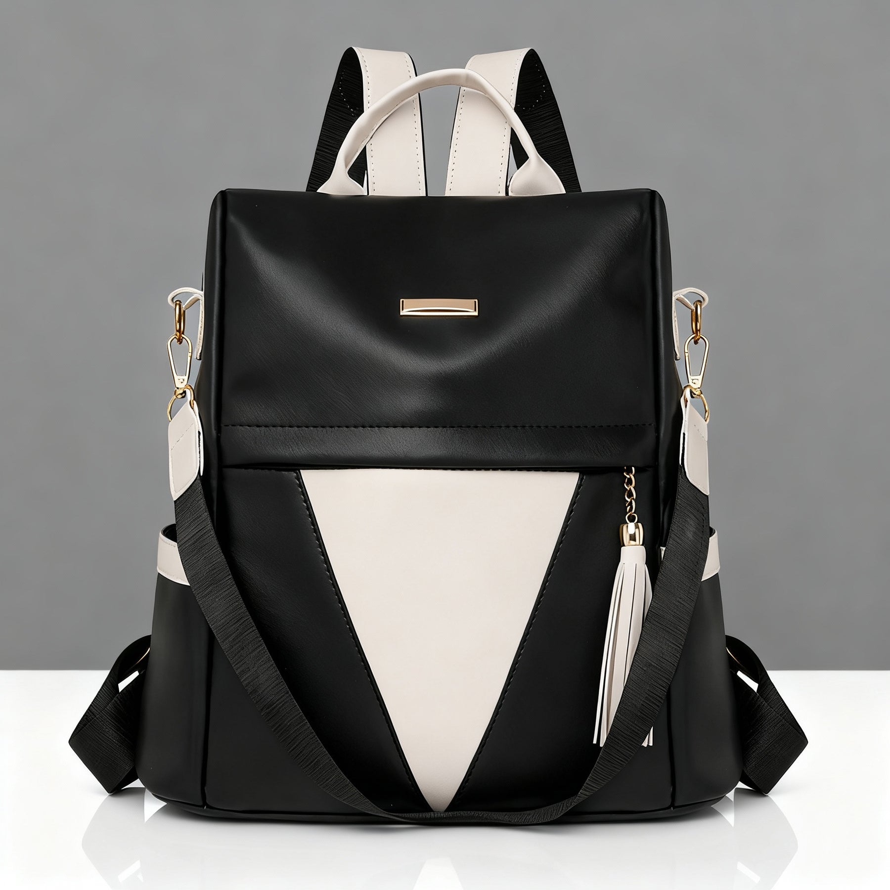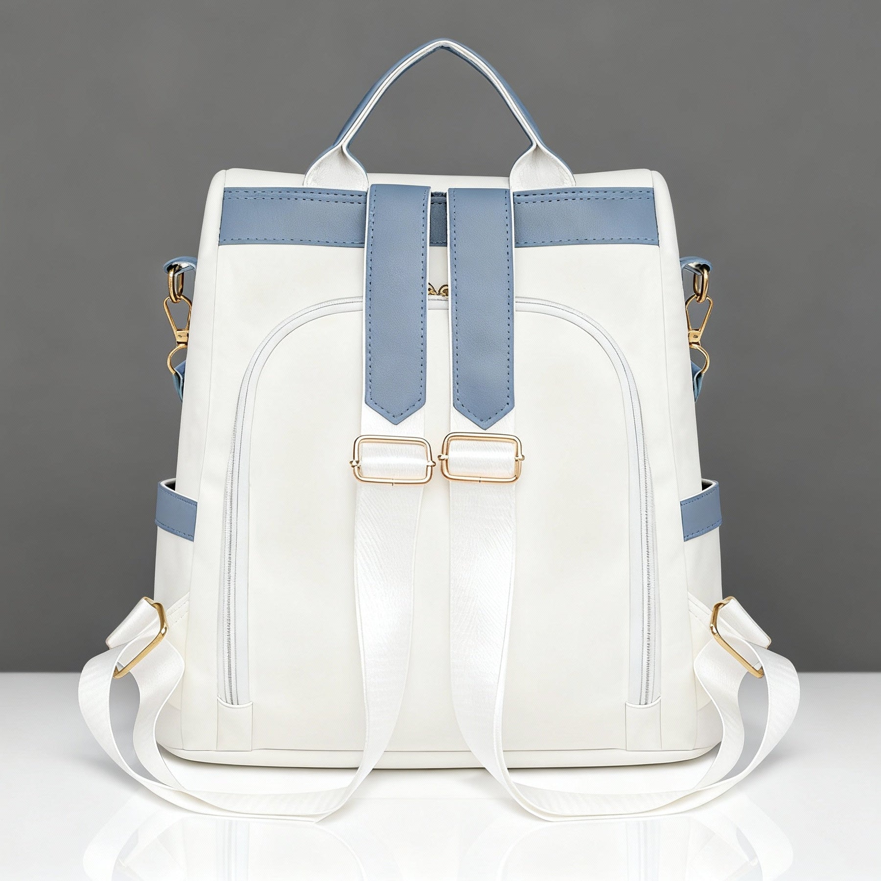 Crafted from premium vegan leather with a smooth, two-tone finish by Alyssa New York Designs. The structured body offers generous room for daily essentials, while the discreet rear-zip opening keeps valuables secure and easy to reach. Finished with adjustable straps for a tailored, comfortable fit.