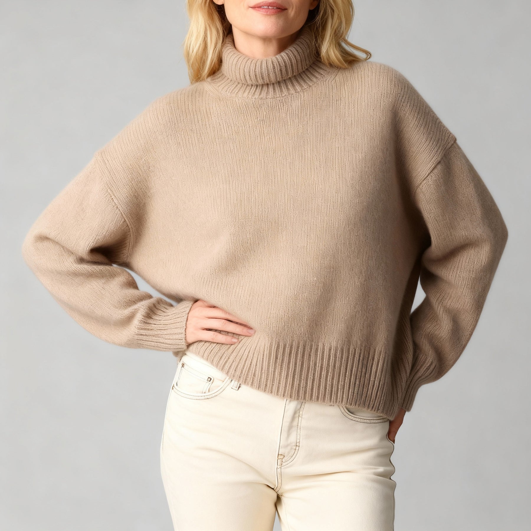 the Jennifer Turtleneck Sweater is defined by a relaxed silhouette and a soft, finely knitted texture that drapes naturally on the body. Designed with a classic turtleneck collar, it delivers warmth and comfort with a smooth, non-itch feel for all-day wear.