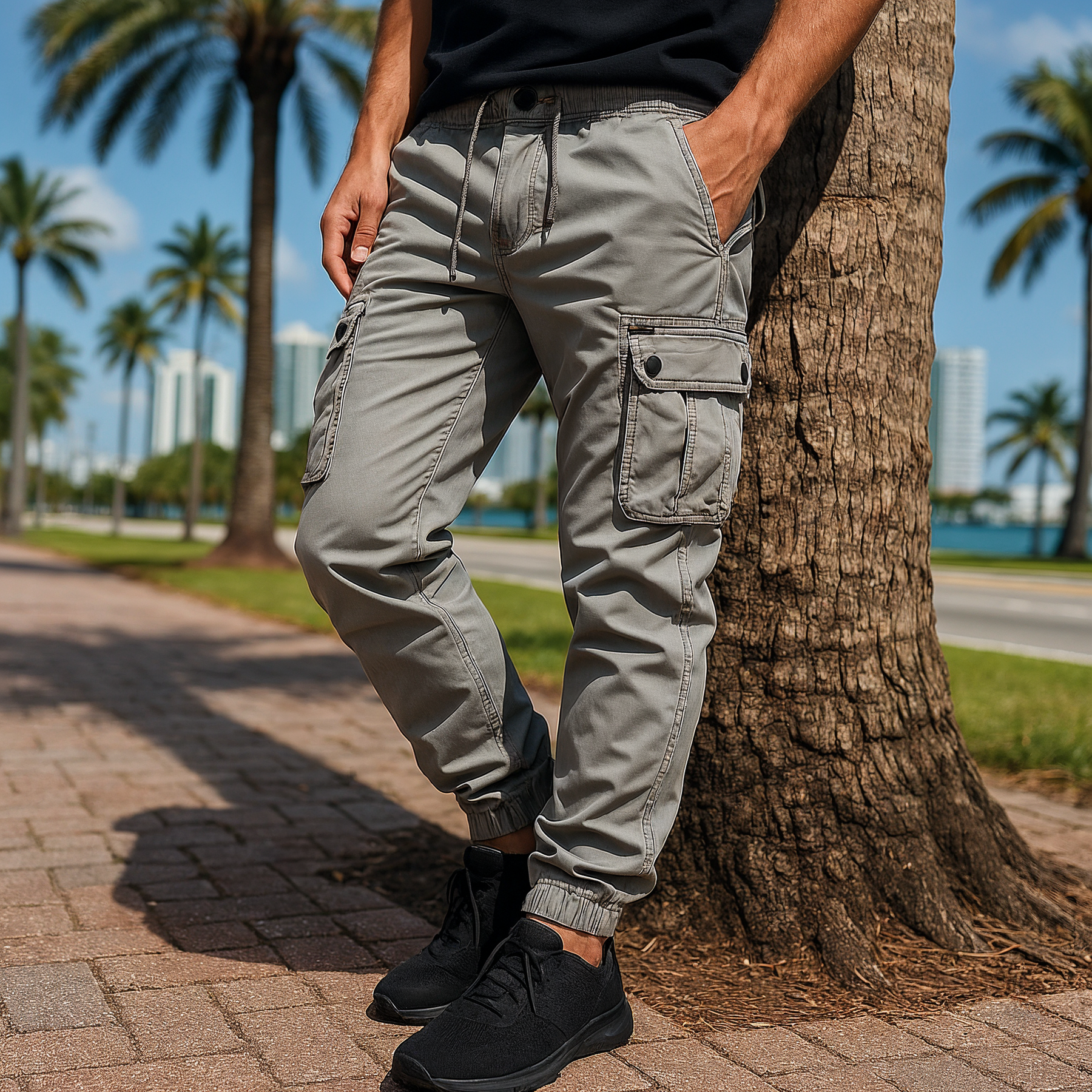 Built from lightweight, breathable fabric with a flexible construction for unrestricted movement. Designed with a tapered leg, elastic cuffs, and an adjustable drawstring waist for a streamlined fit. Functional cargo pockets hold daily essentials without adding bulk.